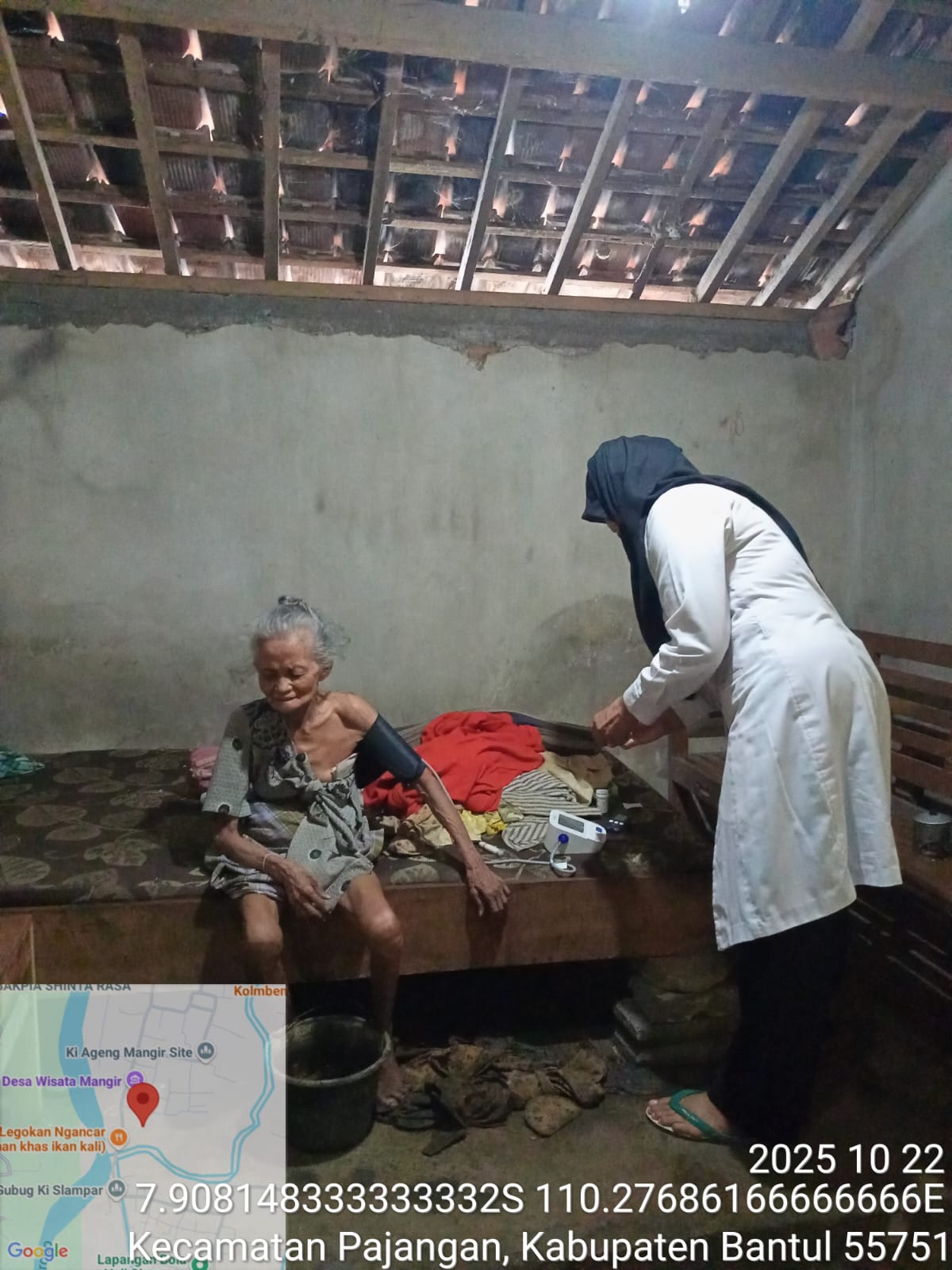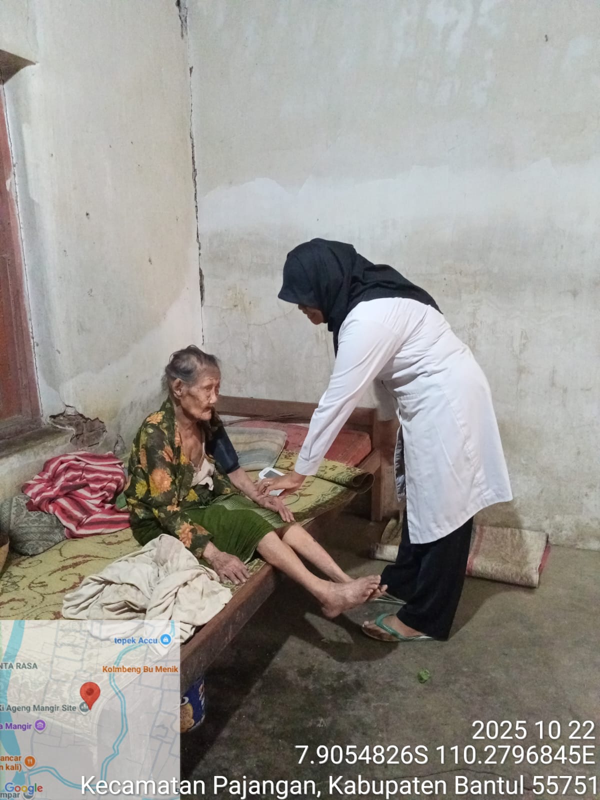 Puskesmas bersama kader kesehatan melakukan kunjungan rumah bagi lansia risiko tinggi di Kalurahan Mangir Kidul, Kapanewon Pajangan.