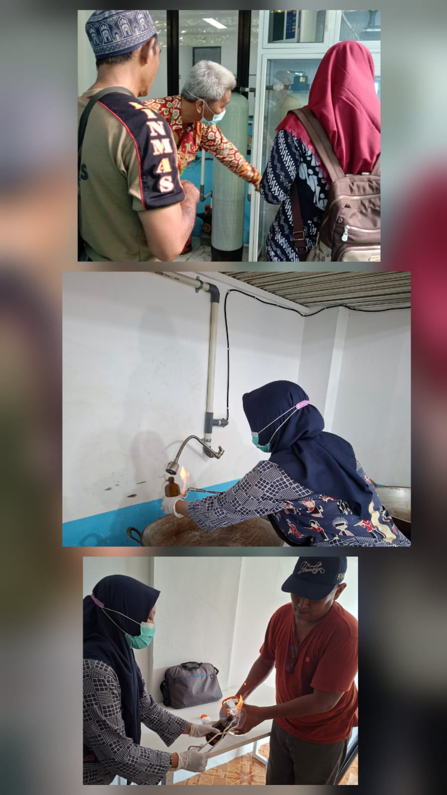 Sampel kemudian dikirim ke laboratorium rujukan untuk dilakukan pemeriksaan kualitas air sesuai Permenkes No. 492 Tahun 2022 tentang Persyaratan Kualitas Air Minum dan Permenkes No. 32 Tahun 2017 untuk air bersih.